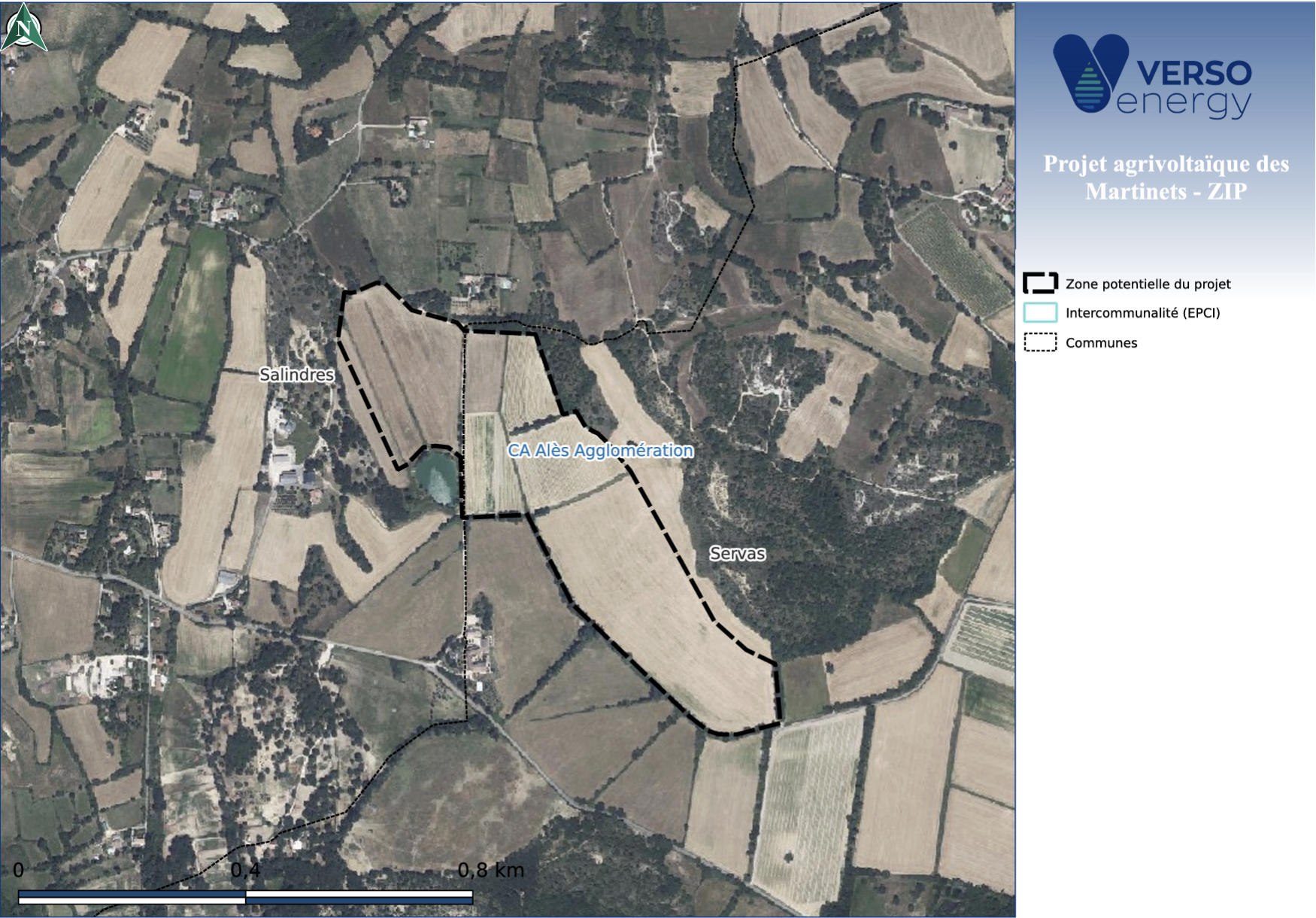 Le projet est localisé sur les communes de Salindres et de Servas. Ses communes sont situées dans le département du Gard, en région Occitanie au sein de la Communauté d’agglomération Alès agglomération.